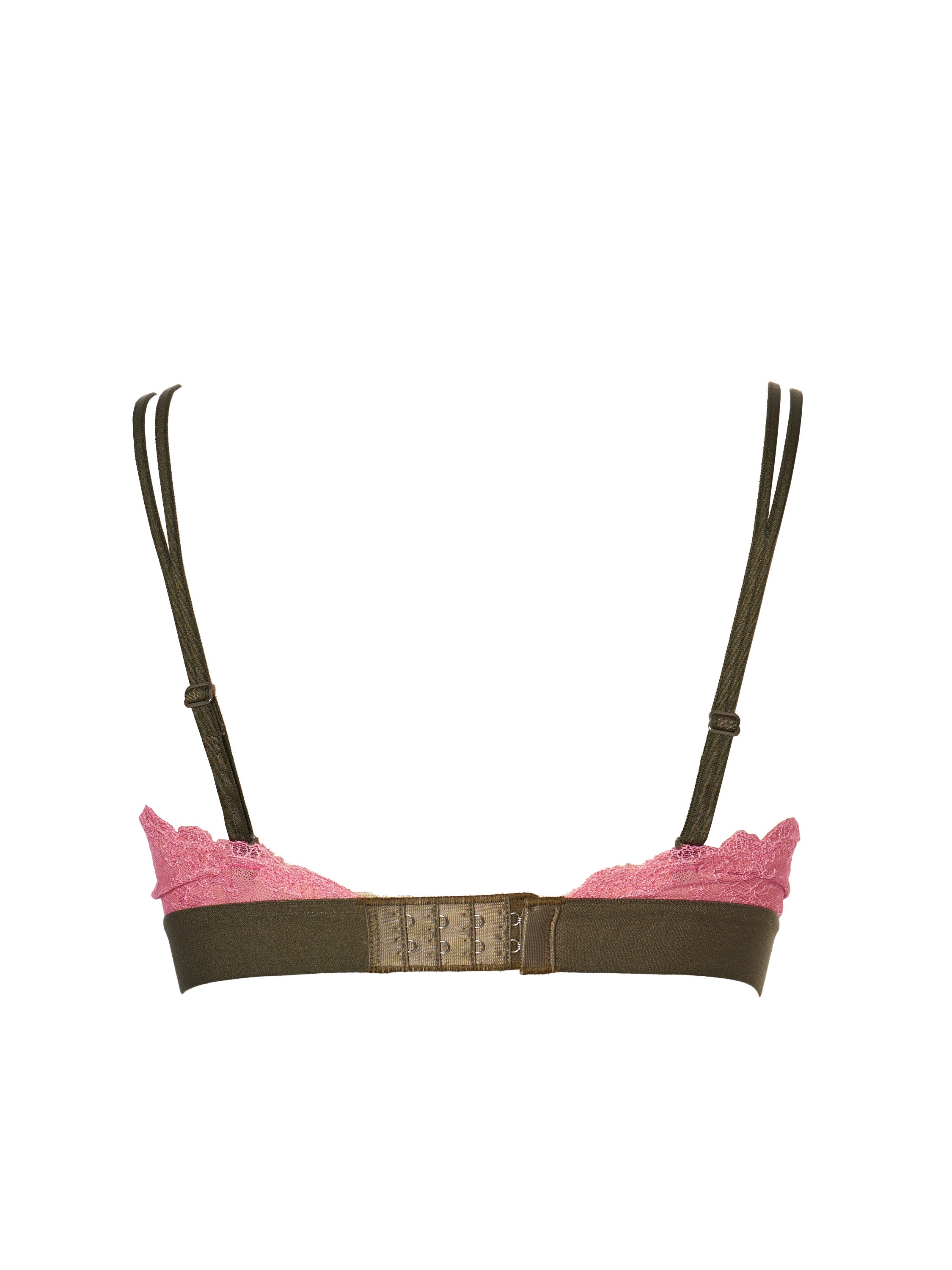 2股に分かれる細いストラップを採用。狭いアームのアウターから覗かせたりと、よりファッション感覚で下着を楽しめるデザインに仕上げました。後ろカンは取り外し可能で、左右付け替えることでアメリカンスリーブとしても楽しめます
